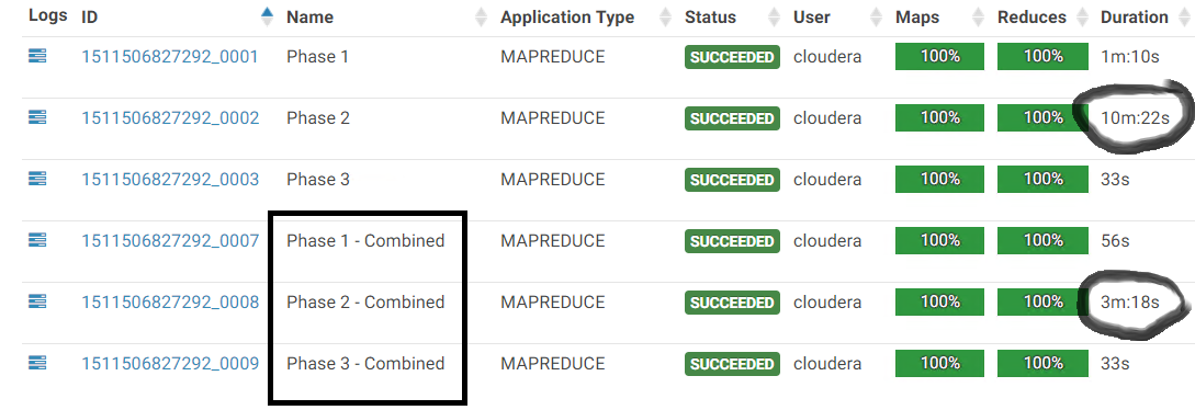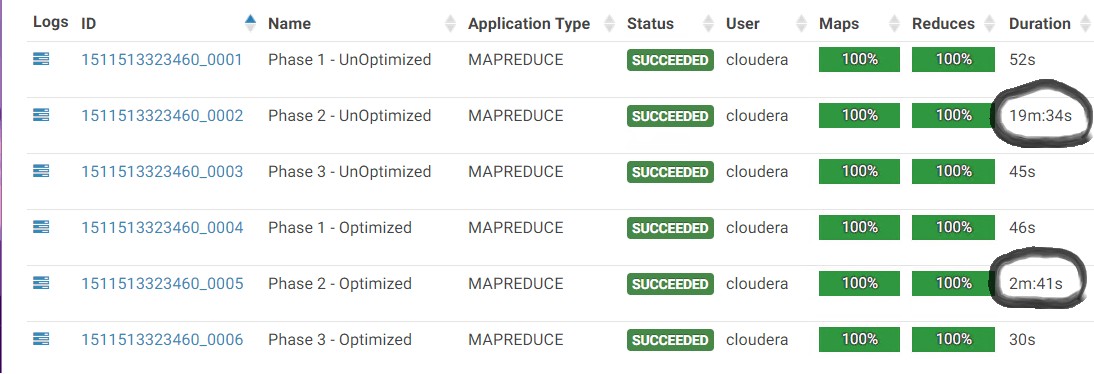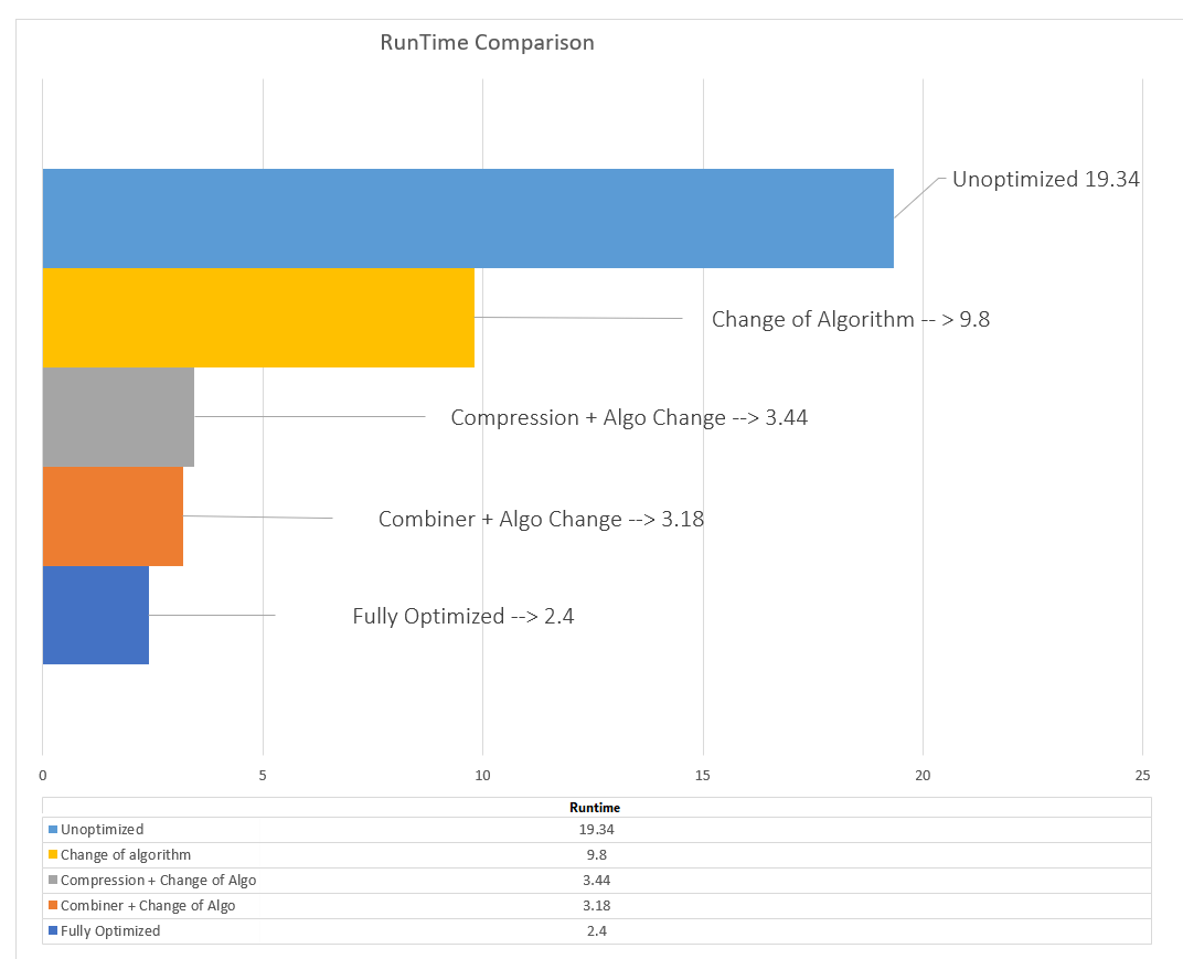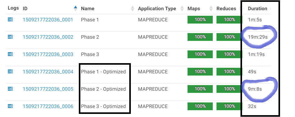 - We see a similar observation in the Optimized Phase 3 as the mapper just gets half the input and thus less data is moved across the node. The result is again a reduction of more than 50% in the runtime required for completion. 1 Minute –> 30 seconds