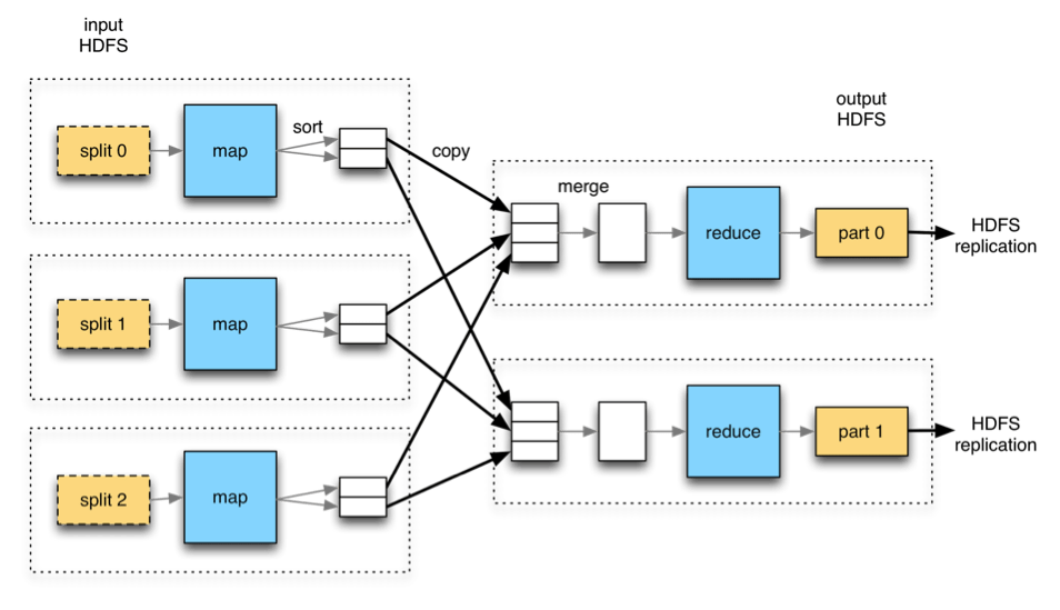 Before I talk about the various ways in which one can optimize MR jobs, let’s first have a look at the data flow between the Mapper and the Reducer in a typical MapReduce workflow.